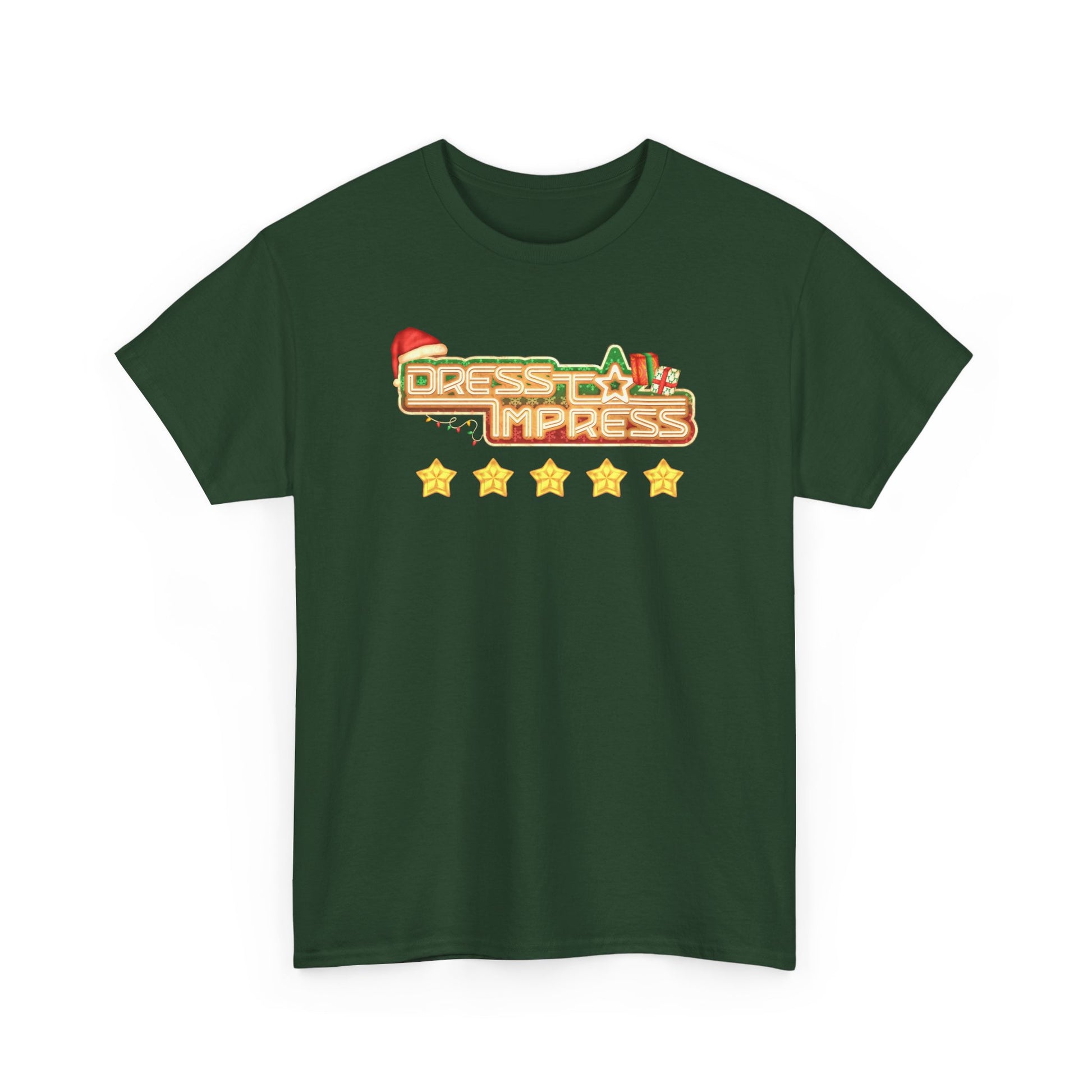 Dress To Impress logo Tee | Holiday Santa Hat, 5 Star Rating, Roblox Game