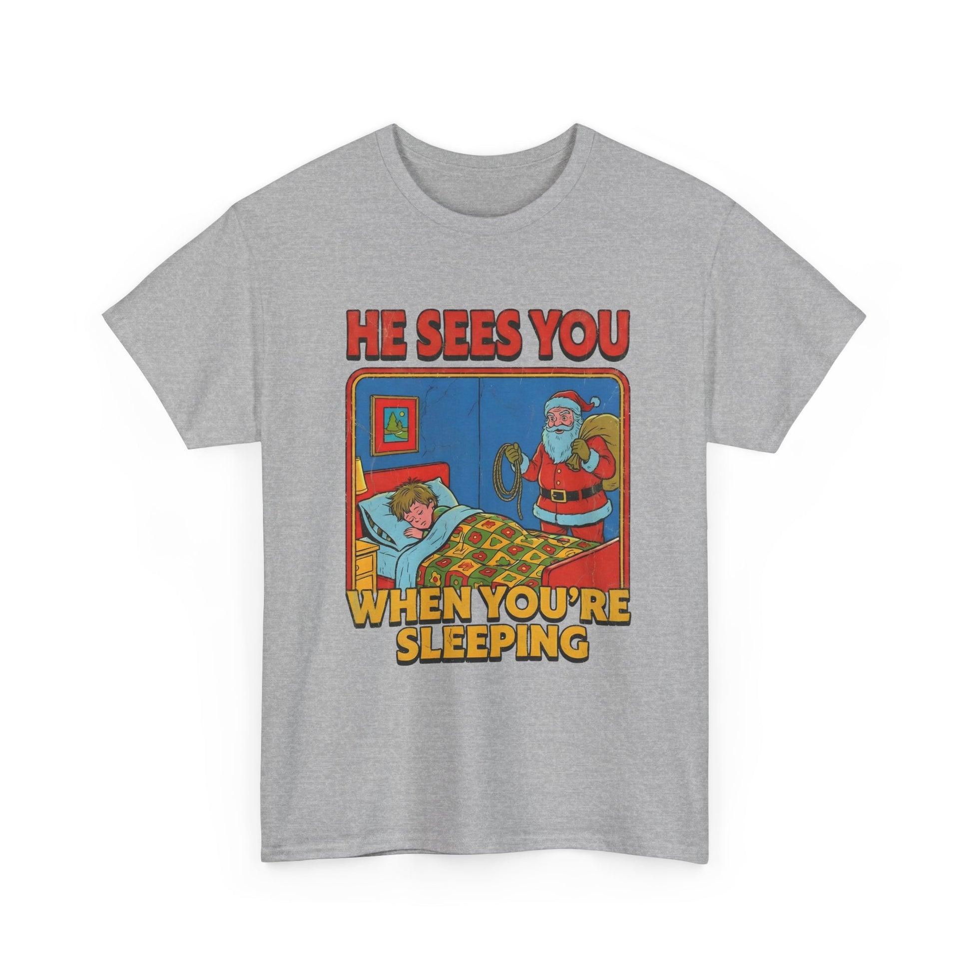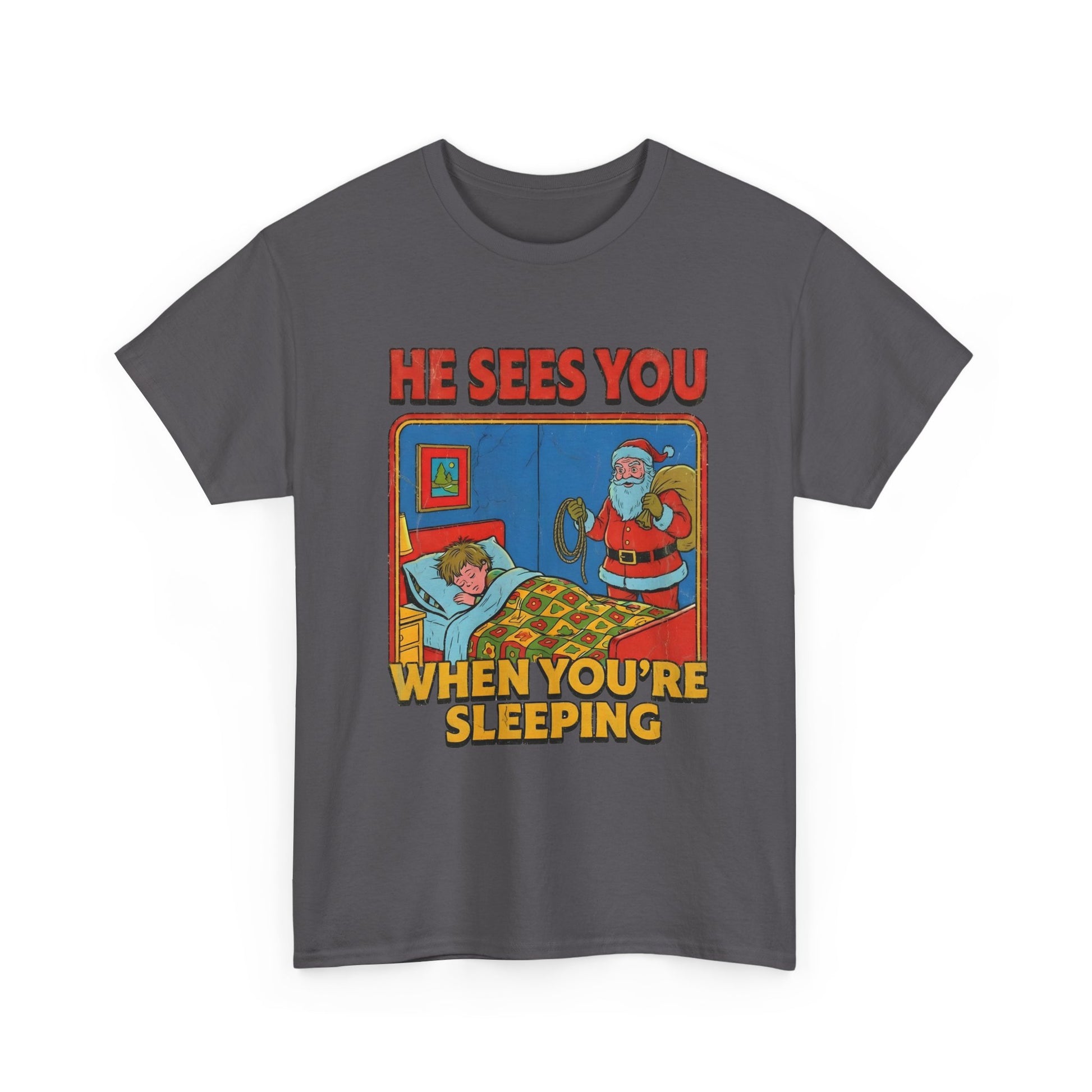 Santa Sees You When You're Sleeping Vintage Horror Tee | Christmas Creepy Holiday